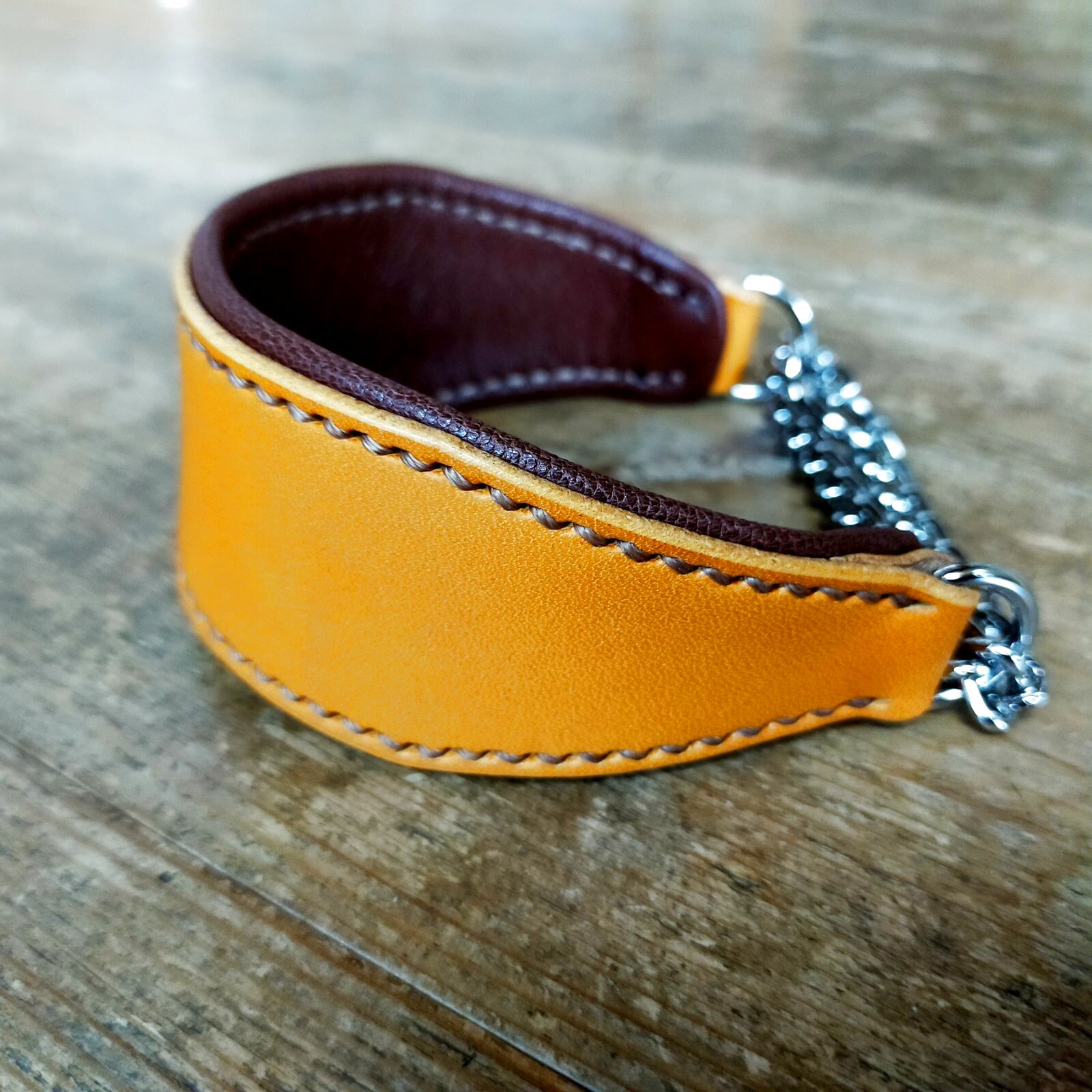 自然な風合いのオイルレザーを使用したイタグレ用幅広首輪です。